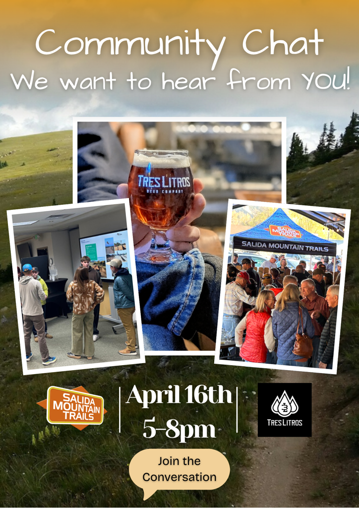 We're hosting Salida Mountain Trails for a community chat from 5-8pm. Ask any questions you may have and help shape the future of Salida's trail systems. |